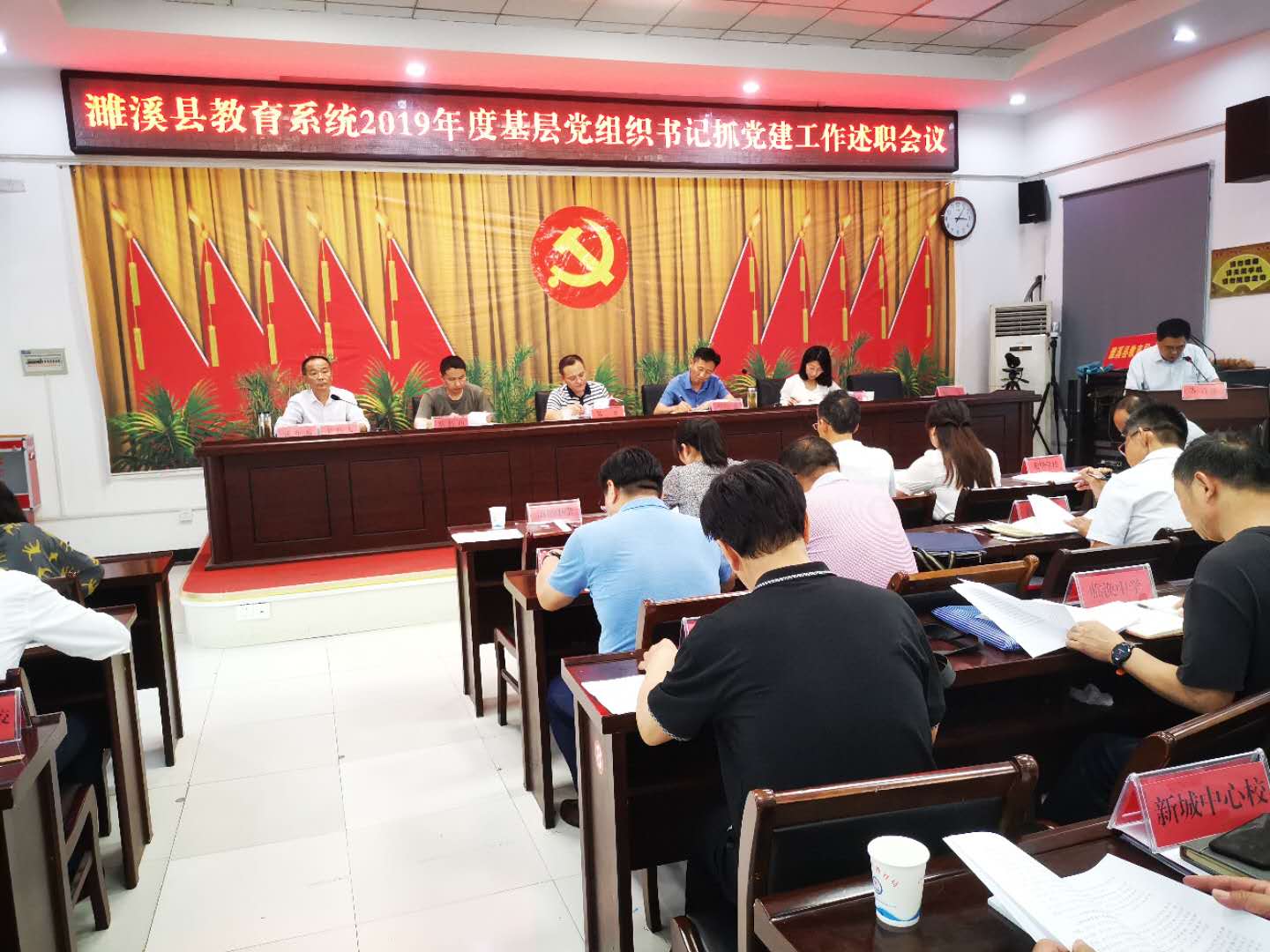 根据县委组织部统一部署,7月31日下午,濉溪县教育局党委召开教育系统2019年度基层党组织书记抓党建工作述职会议。局领导班子成员、机关各股室负责人、教育系统基层党组织书记等60余人参会,县委组织部常务副部长陈光到会指导。
